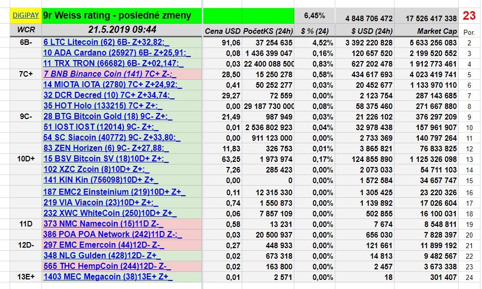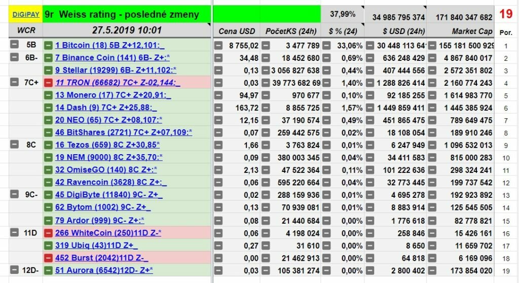 Pokračovať v čítaní: 2019-05-02 Weiss ratingKryptomeny ktoré sa ťažia
